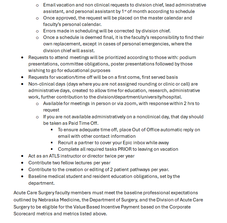 • Leadership: Acute Care Surgery is present in all arenas of Nebraska Medicine- including the ER, OR, floor, ICU and clinic.  Given our large footprint, all members of the Acute Care Surgery team must act as leaders and a resource to any person or patient at Nebraska Medicine who asks for our help or input.