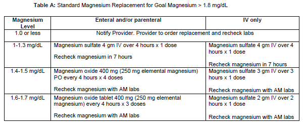 - "Off protocol" oral replacement will be allowed in certain instances (i.e., continuation of home scheduled magnesium regimen).