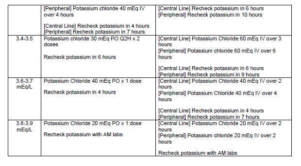 - "Off protocol" oral replacement will be allowed in certain instances (i.e., continuation of home scheduled potassium regimen or intermittent loop diuretic doses).