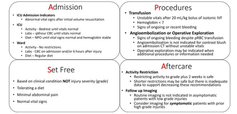 - Updated American Pediatric Surgical Association (APSA) Blunt Liver/Spleen Injury Guidelines