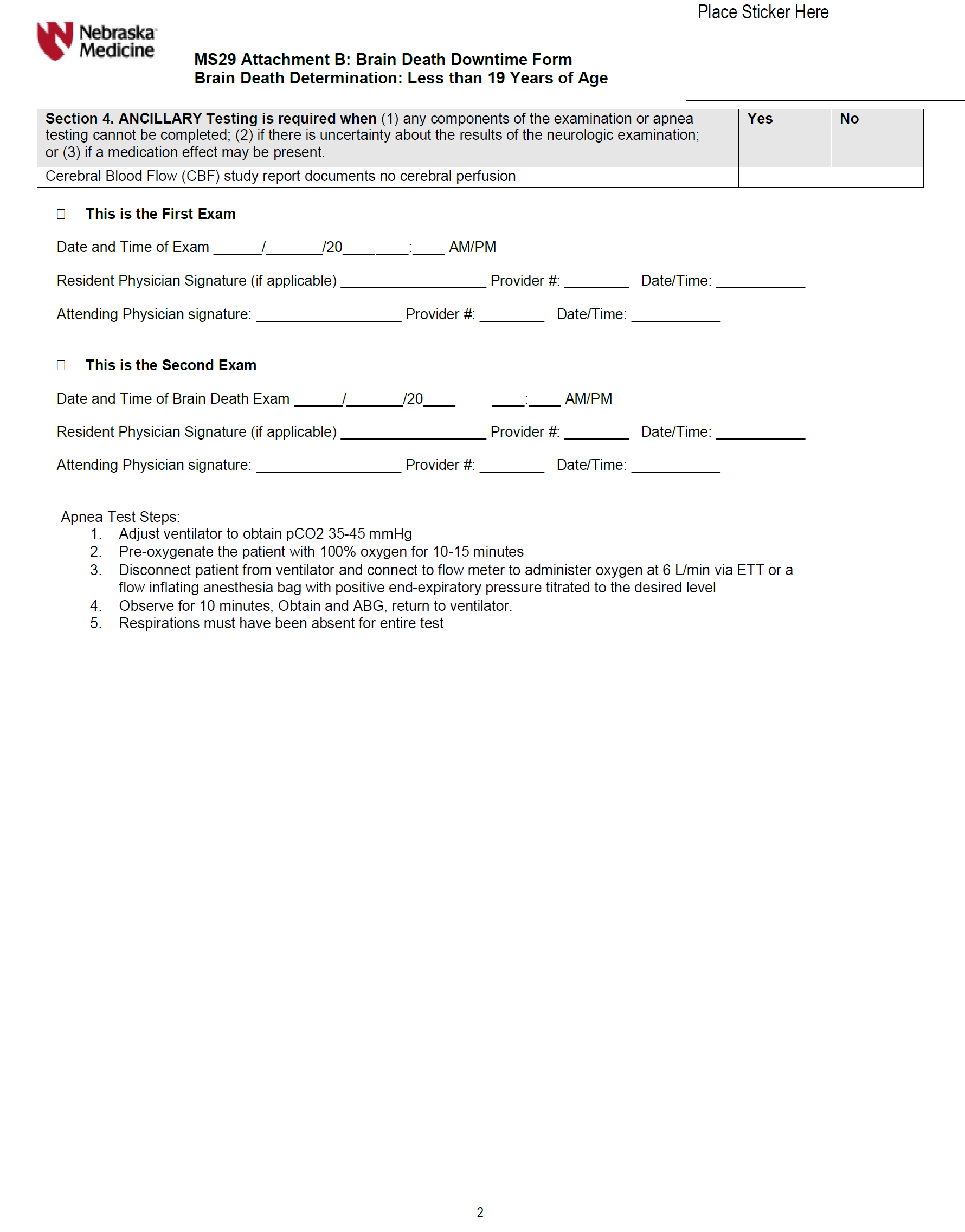 3. For practical purposes, Nebraska Medicine uses the American Academy of Neurology Practical Guidance for Determination of Brain Death criteria (Wijdicks EFM et al. Neurology 2010;74:1911-1918).