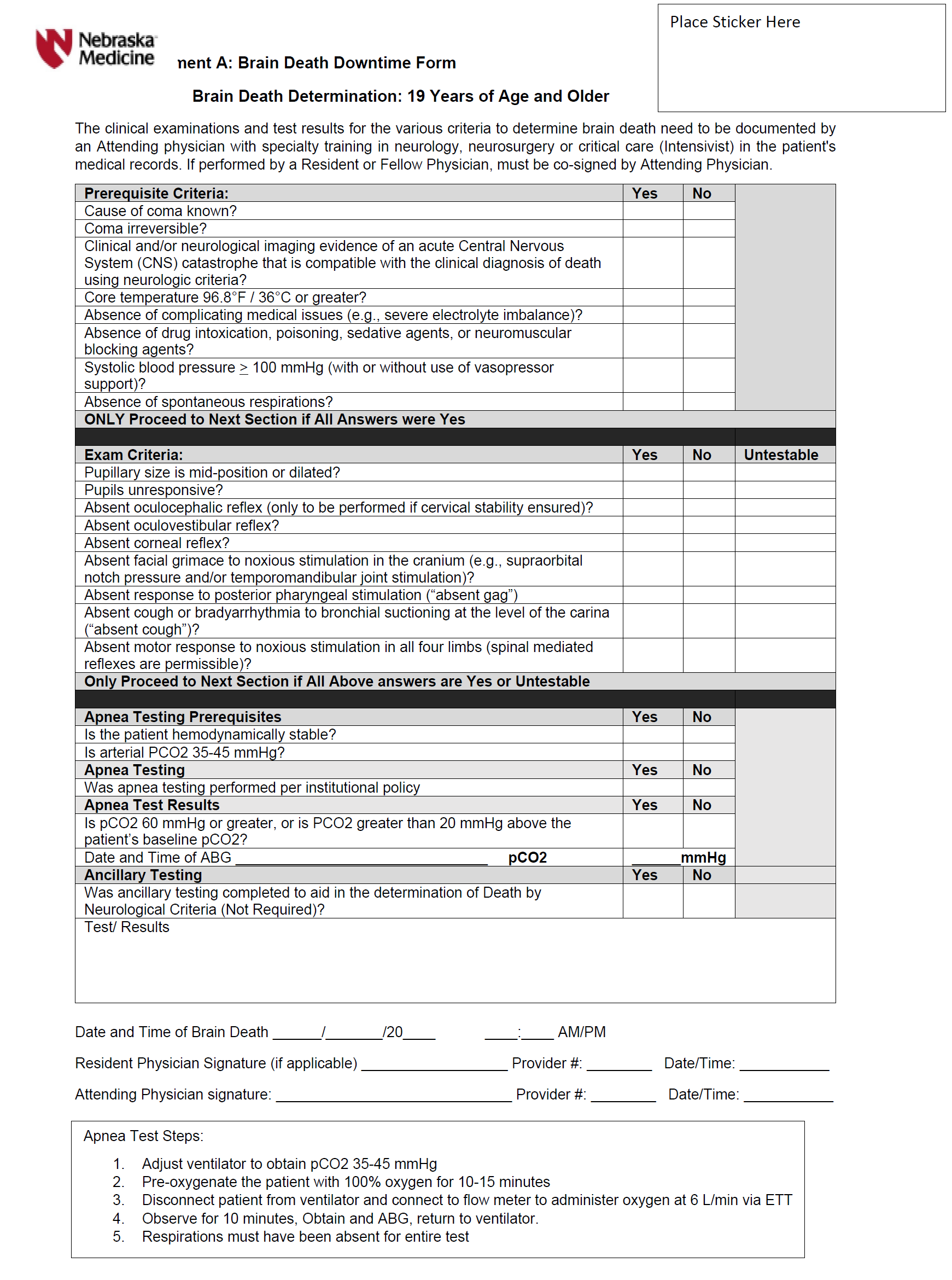Nebraska Medicine Brain Death Criteria